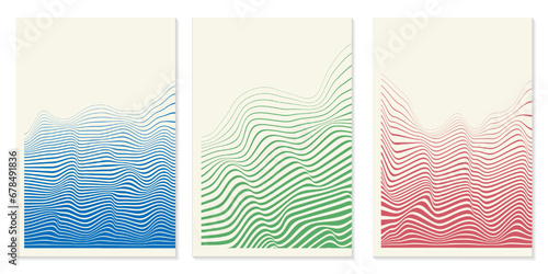 Abstract Lines. Lines Wave Poster graphic design in the style of Lines Wave Poster. 3d graphic effect. Set of templates for banner, cover, poster, postcard.Striped vector background. Vector illustrati