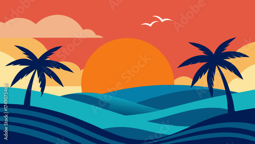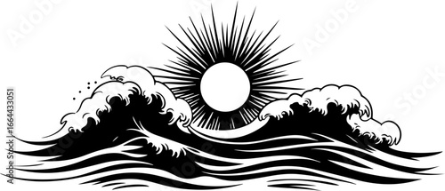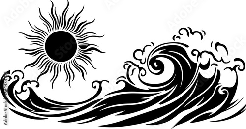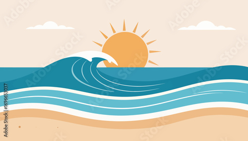 illustration of sun and ocean waves