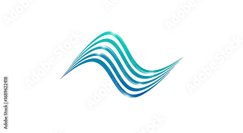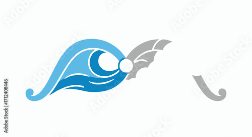 Stylized blue water wave with a grey wing icon element.