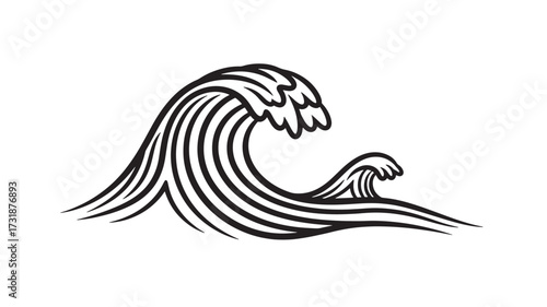 Stylized ocean wave illustration black and white vector design ideal for logos and nautical themes