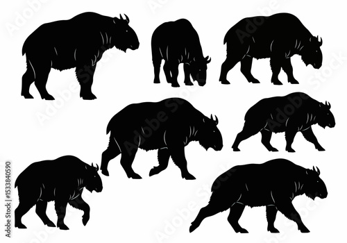 Dragon silhouette collection, fantasy creature icons, flying beast vector, mythical reptile shapes, black winged monster, medieval design elements