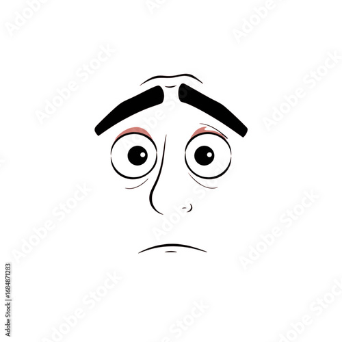 Vector illustration of a young woman's face with a shy and embarrassed expression. Cute cartoon female character blushing with anxiety