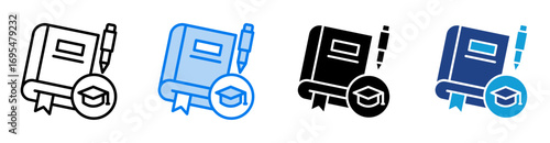 Thesis Icon Variations. Research students working on thesis projects. Icon set. Set Logo of Research students: Graduation cap. harmonious logo variations of
