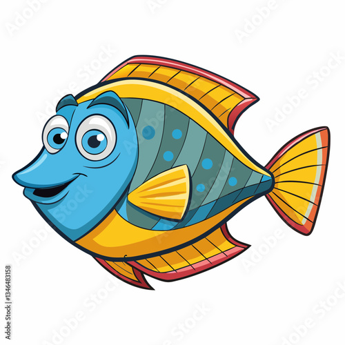 Cartoon flounder fish character. Isolated vector flat-bodied plaice marine creature with both eyes on one side of head. Master of camouflage, blending seamlessly with their surroundings to ambush prey