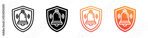 Surveillance Alert Icons. Outline style icons of Surveillance Alerts and Warnings: motion alert icon, intruder symbol, alarm bell