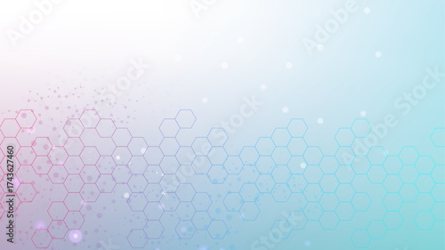 Health care or medical abstract background with hexagons, lines and dots. Scientific innovation banner template concept. Biology and pharmaceutical technology background. illustration.