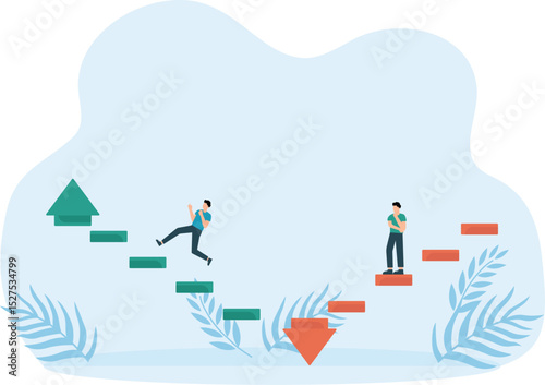 The stock market crash plunged desperate businessmen into a financial abyss. The red arrows indicate economic recession, investment losses, company bankruptcies and debts. Business vector illustration