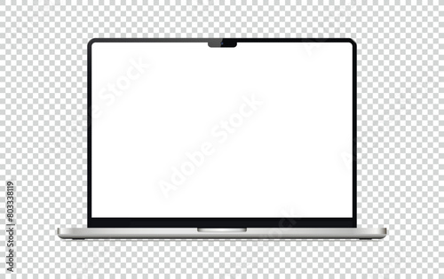 Realistic laptop isolated on white background. Computer notebook with empty screen