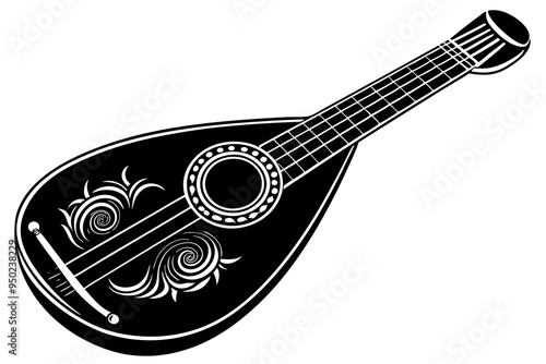 Guitar acoustic vector silhouette simple graphic and flat cartoon black white design illustration, modern and old retro musical instrument clipart image