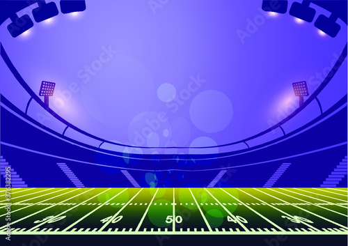 American football arena field with bright stadium lights design. Vector illumination