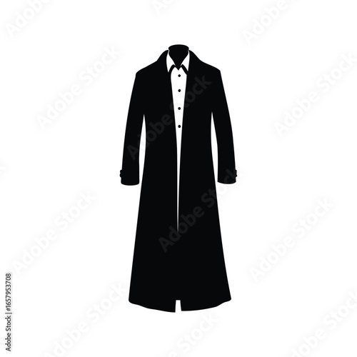 Elegant silhouette of a long black coat with a collared shirt, Male cloths silhouette vector illustration