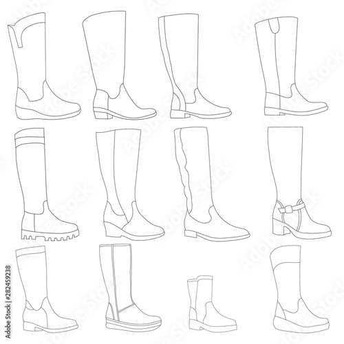 vector fashion shoes silhouette, set of icon boots isolated on white background