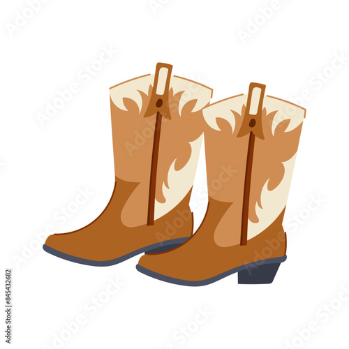 Vector illustration, watercolor clipart of vintage cowboy boots, on white background