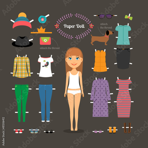 Female warm cozy fashion outfit with different accessories set isolated on white background