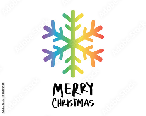 Rainbow beautiful snowflake with merry christmas hand drawn text on white background for lgbtq celebration concept