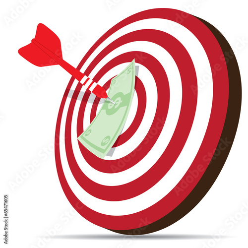 Target with an arrow hitting the center. 3d archery target with arrow and shadow. Concept of archery or reaching the goal in business. Vector illustration.