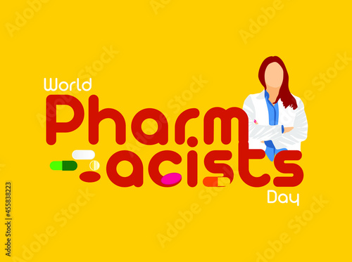 25 th September is World Pharmacist Day. People and medicine. Suitable for posters, banners and social media. White background.