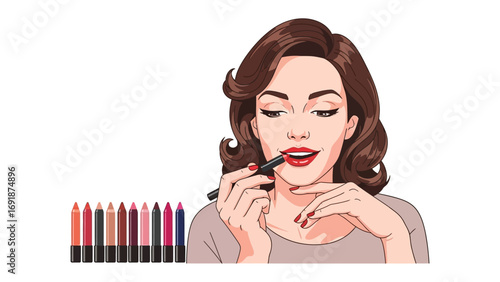 Vector illustration of a collection of strokes of lipsticks various colors isolated on white. Elements of the design of advertising posters, leaflets for the promotion of decorative cosmetics