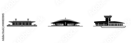 Silhouette pictograms of various building types showcasing design elements for architecture and urban planning