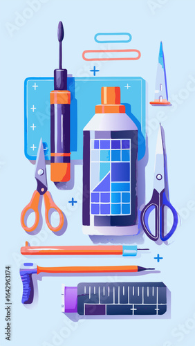 Tools for building a miniature model  watercolor image. Flat style. Vector illustration.