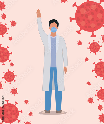 doctor with preventions of coronavirus 2019 ncov vector illustration design