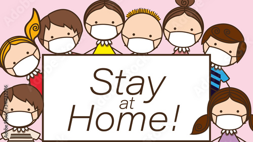 campaign of social distancing for 2019 ncov with children using face mask vector illustration design