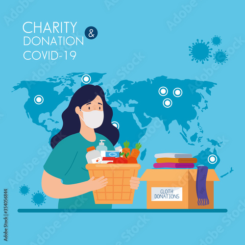 Woman vaccination and doctors with masks against 2019 ncov virus vector design