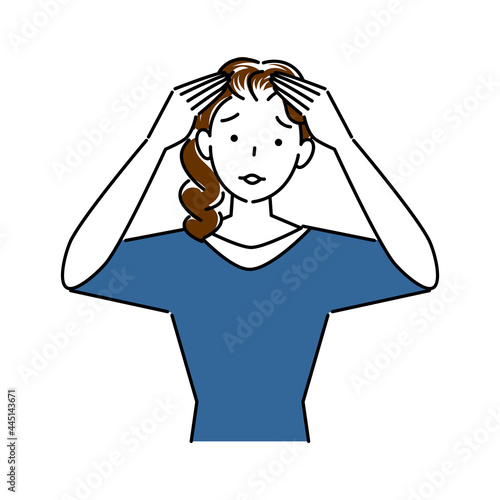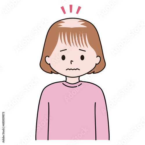頭頂の薄毛に悩む女性(輪郭線なし)