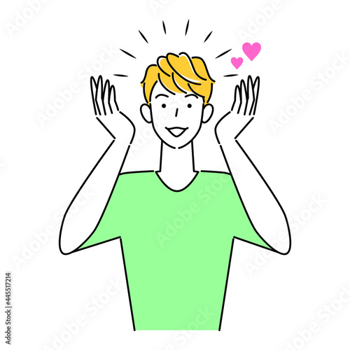 Male hands holding a mobile phone. Tap the phone screen with your index finger. Scrolling a page or searching for something. Smartphone from the outside. Flat vector.