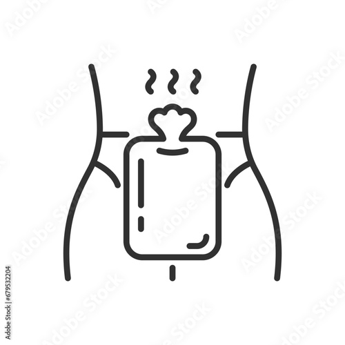 Medical warmer icon set isolated on white background. Red flat, simple black silhouette and linear warming pan - rubber hot water bottle or bag. Heat pad design sign cartoon style vector illustration.