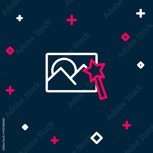 Blue line Photo retouching icon isolated on blue background. Photographer, photography, retouch icon. Vector