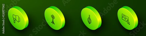 Set Isometric line Photo camera, retouching, Camera photo lens and Graphic tablet icon. Vector