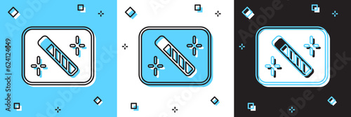 Set line Photo camera, flash, retouching and . Colorful square button. Vector