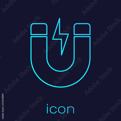 Turquoise Magnet with lightning line icon isolated on blue background. Horseshoe magnet, magnetism, magnetize, attraction sign. Vector Illustration