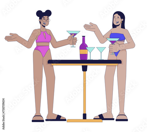 Summer event isolated concept vector illustration set. Beach party, swimming pool dance, foam party entertainment, swimming suits, bikini, dance floor, flamingo inflatable circle vector concept.