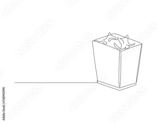 Continuous one line drawing of recycle bin home appliance. One line of trash can. kitchenware concept continuous line art. Editable outline.
