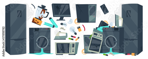 Waste management and recycling vector illustration. Green concept with icons related to sorting and separating different garbage or rubbish types