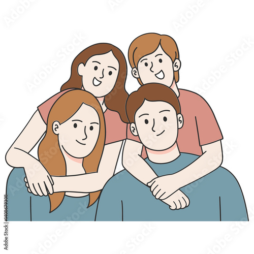 A group of siblings huddled together sharing secrets and catching up on each others lives.. Vector illustration
