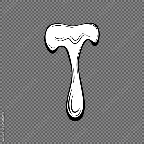 Dripping liquid outline on a transparent background. Contoured black and white illustration of a flowing viscous liquid. Wax, honey, slime. Vector.