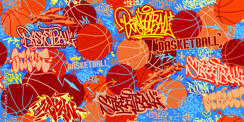 Trendy Seamless Abstract Hip Hop Urban Street Art Graffiti Style Streetball Or Basketball Background