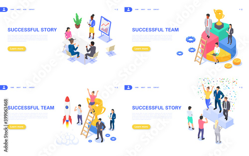 Successful team banners set. Teamwork concept, success story, reward for winning.
