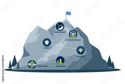 Mission mountain concept. Setting goals for successful business. Vector illustrations in flat design. Isolated on background.