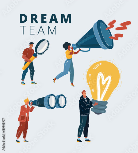 Business team working on joint project and launching creative project. Business partnership and collaboration. Cooperation, finding  creative solutions, flat vector illustration isolated.