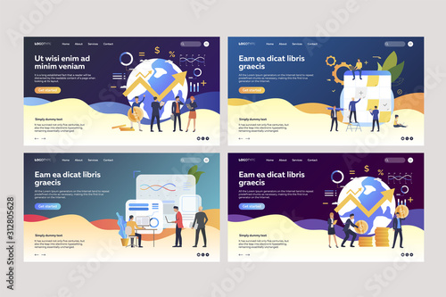 Set of men and women calculating profit. Flat vector illustrations of business people earning money, working with Kanban board. Business success concept for banner, website design or landing web page