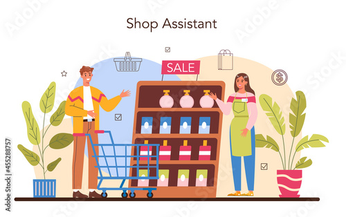 Seller concept. Professional worker in the supermarket, shop