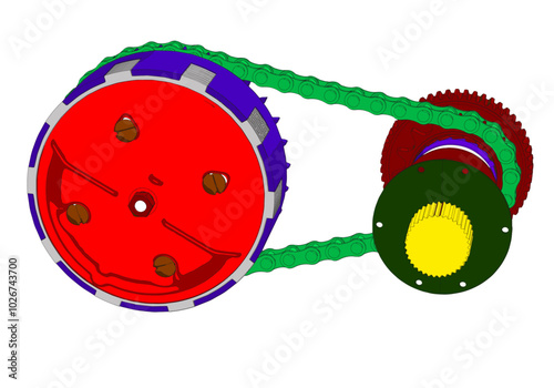 Chain transmission on a white background.