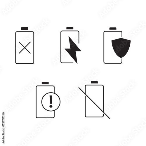 Minimalist Battery Status Line Icon Set: Error, Charge