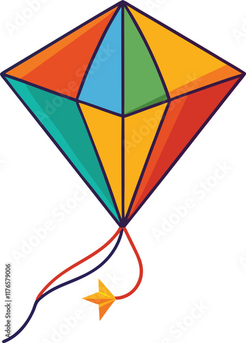 A diamond flying kite with a decorative tail flat vector icon for apps and websites
