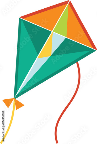 Colorful Kite as Tethered Craft with Wing Surfaces and Tail Vector Set