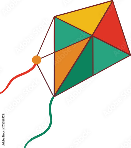 Shaped Yellow and Red Kite as Tethered Craft with Wing Surface and Tail Vector Illustration